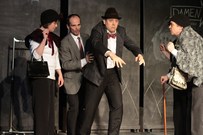 In der Inszenierung des Kellertheaters reisen Lämmchen und Pinneberg durch ein Panoptikum von zum Teil skuril-komischen Figuren ihrer (unserer?) Zeit, immer nah am Abgrund, aber immer auch getragen vom Glauben an ihre große Liebe.